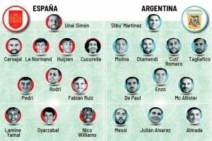 体育资讯10月13日讯 根据《马卡报》报道,西班牙队vs阿根廷队的欧美杯可能明年3月在多哈进行,《马卡报》随后撰文对比了两队首发情况。