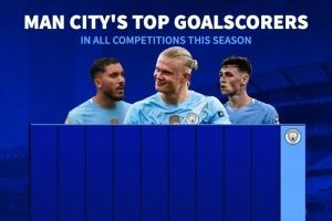 本赛季曼城队内射手榜:哈兰德18球居首,其他球员合计进15球
